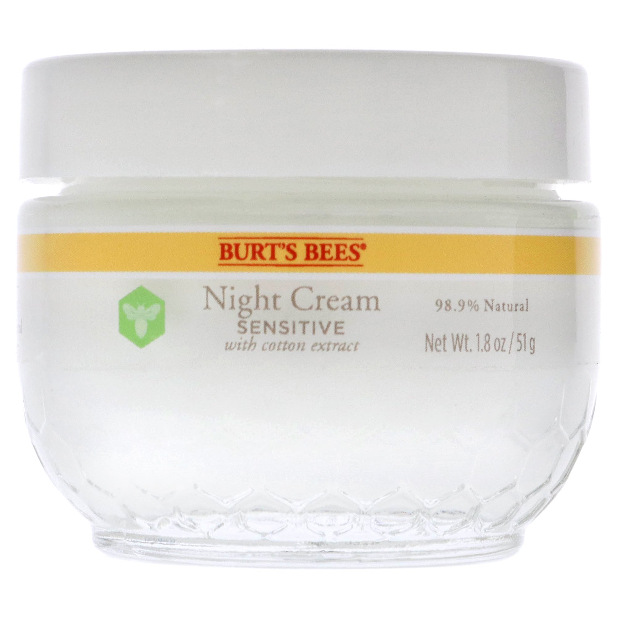 Burt's Bees sensitive hydrating night cream is a gentle, nourishing moisturizer designed specifically for sensitive skin. This night cream is clinically shown to hydrate skin without causing redness or irritation, making it ideal for those with sensitive or reactive skin types. The formula is infused with natural ingredients like cotton extract, which helps to soften and protect the skin from environmental irritants, and rice extract, which provides soothing hydration. Aloe vera further enhances the calming and moisturizing benefits, leaving the skin feeling soft, smooth, and balanced.